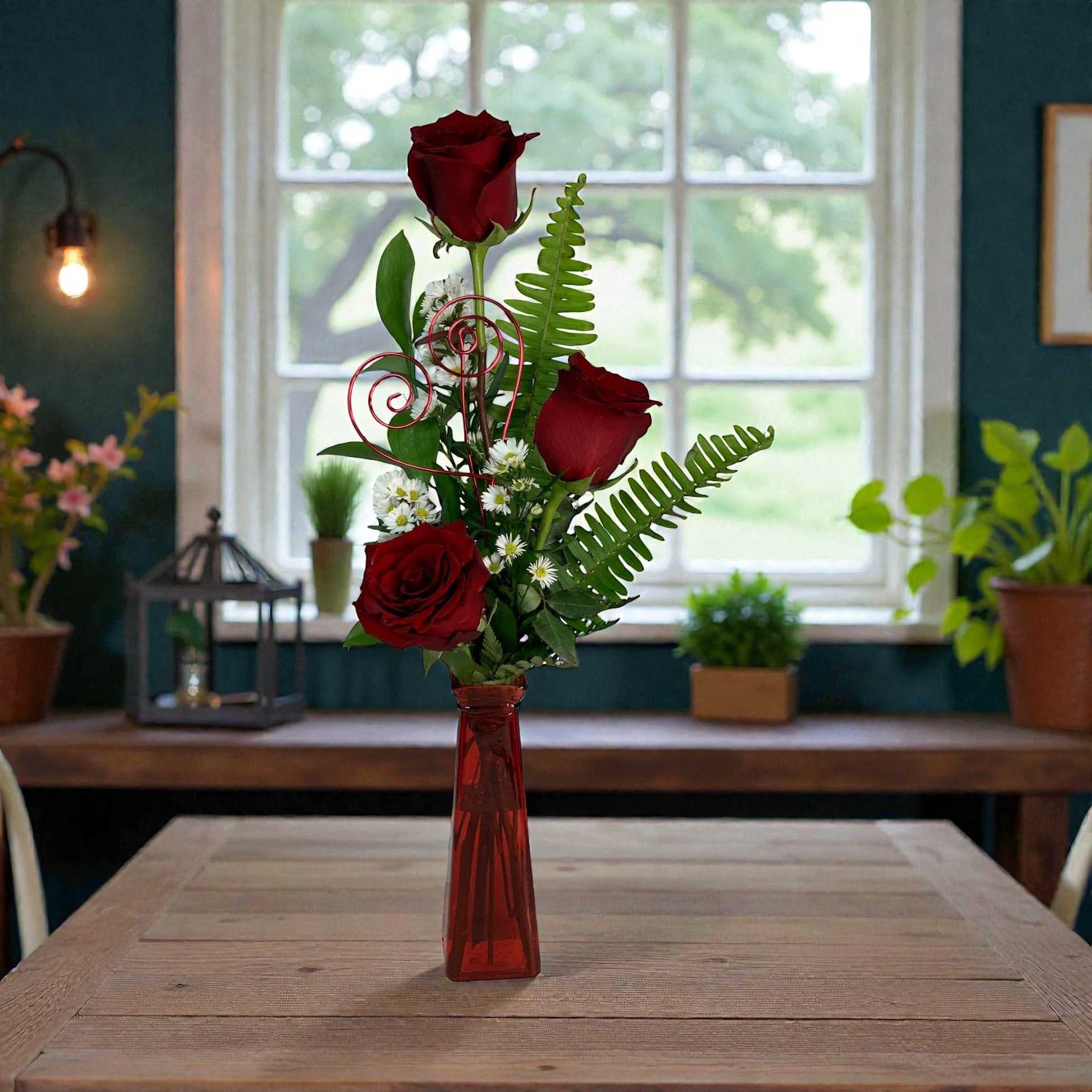 3 Roses Arranged in Vase