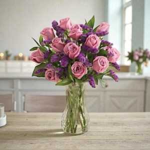 Dozen Purple Roses Arranged