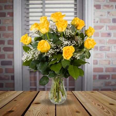 Dozen Yellow Roses Arranged